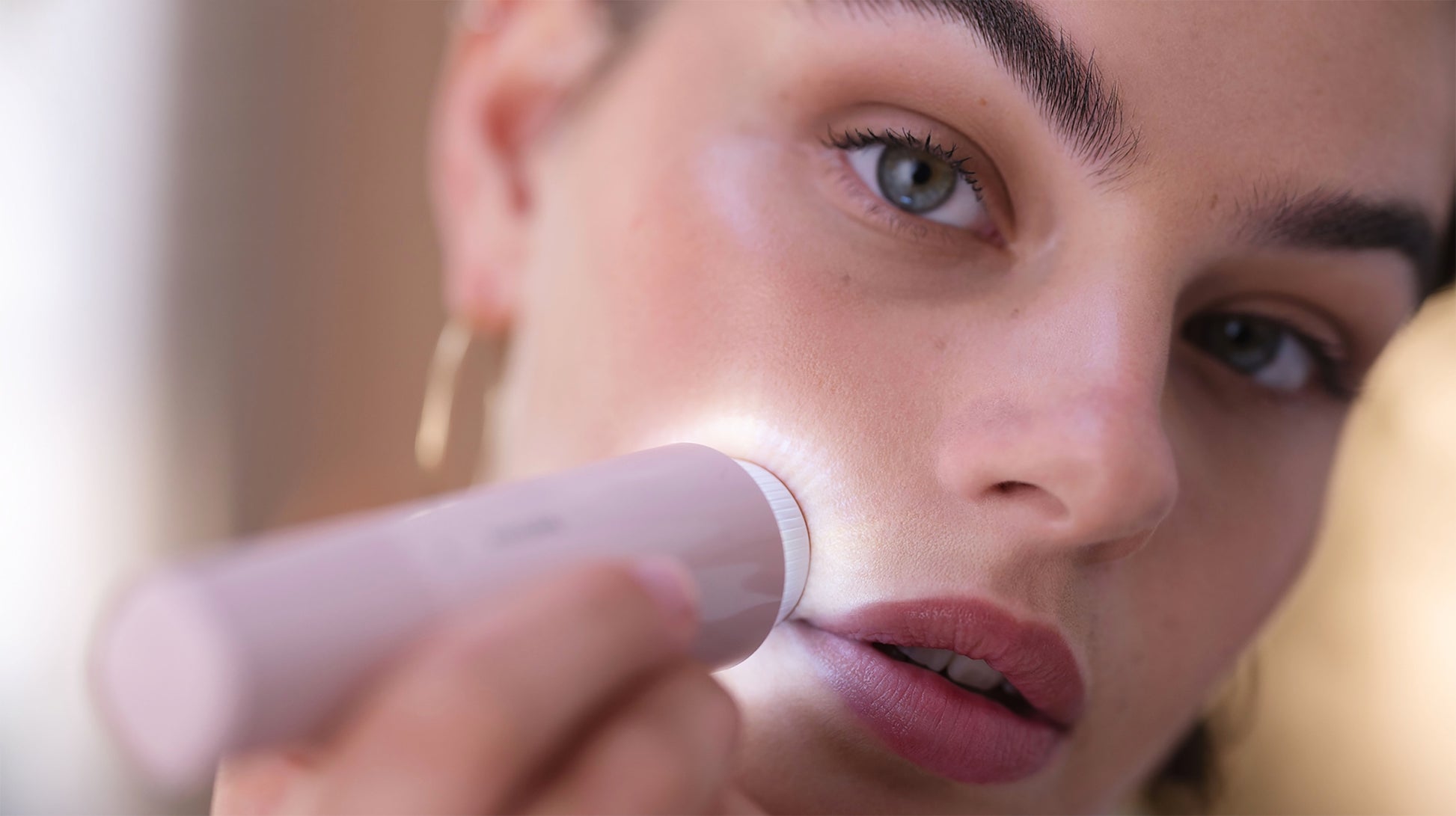 del rostro con el cabezal hipoalergénico. Gracias al espejo incorporado y la luz LED